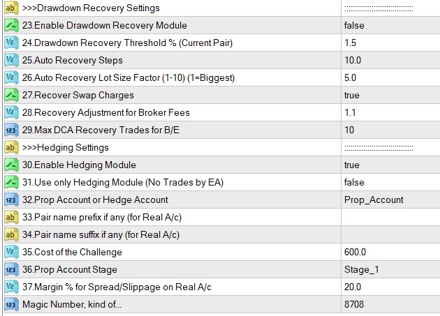 The EA comes with a drawdown recovery module that can be automatically activated when a certain threshold of drawdown occurs. However, you should only activate this module if your prop firm: